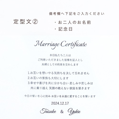 ご購入の際備考欄へお二人のお名前・記念日をご入力ください
