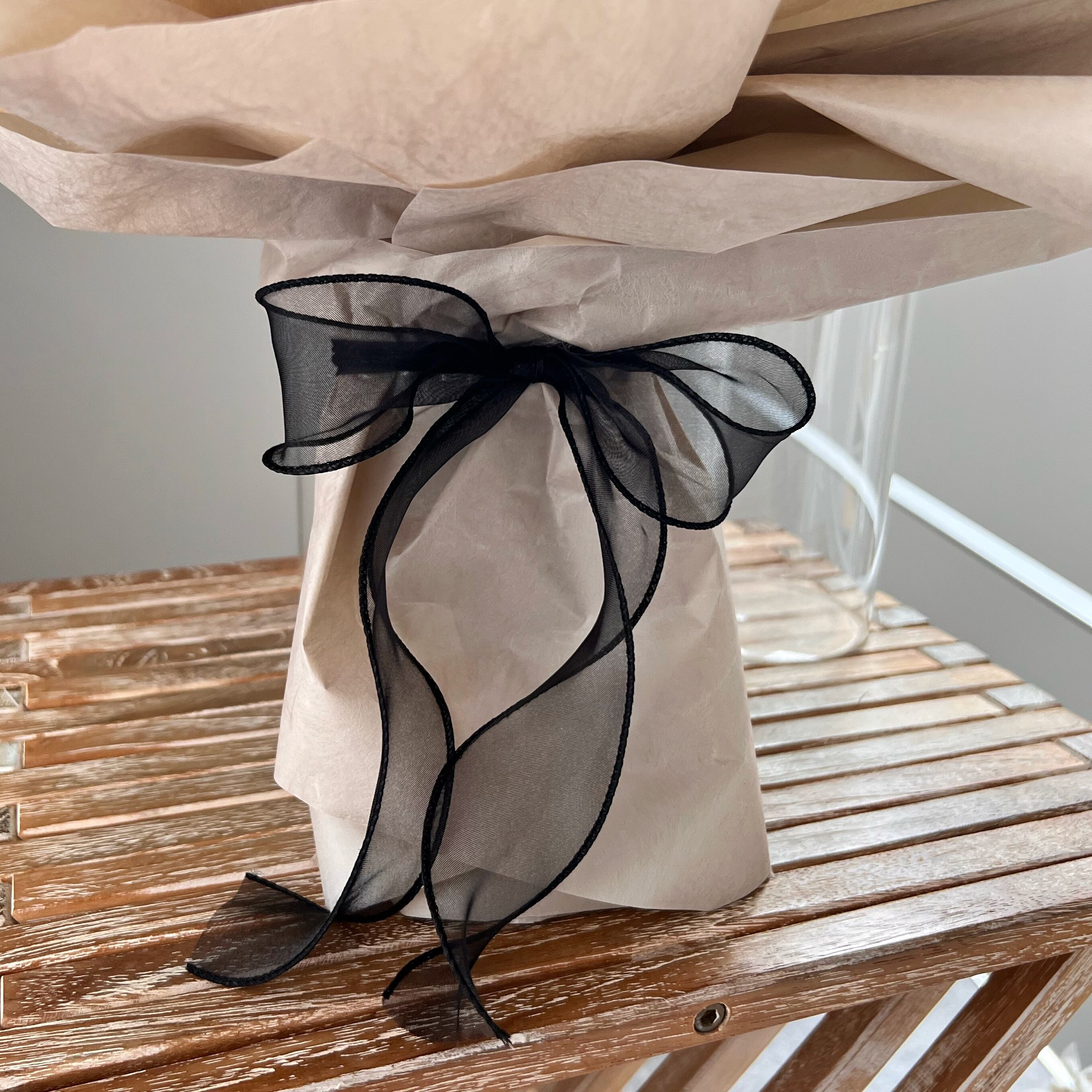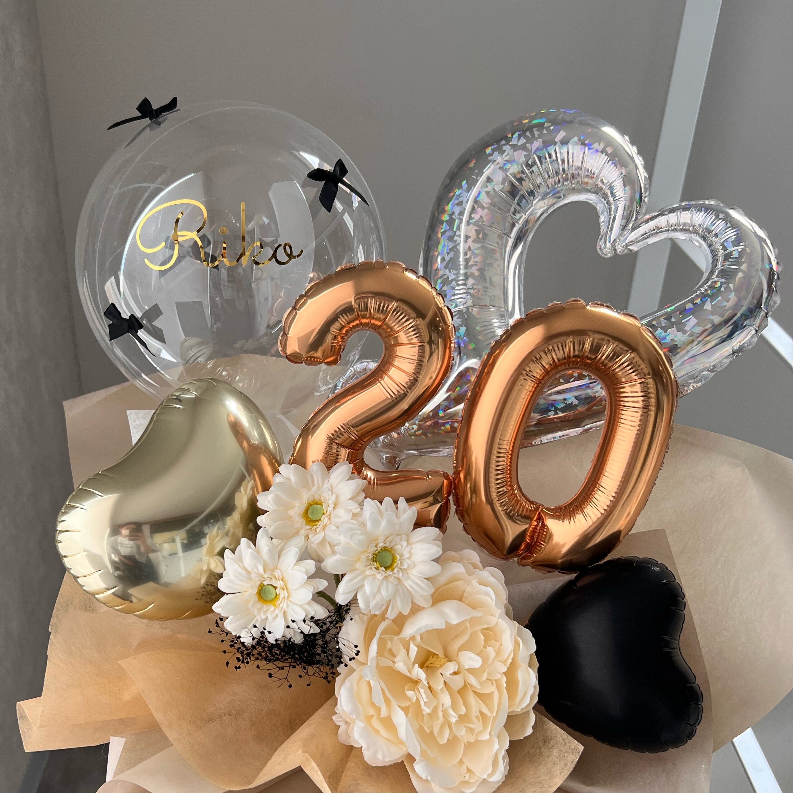 透き通った透明感のある特殊なバルーンをお入れした手持ちタイプの花束になります