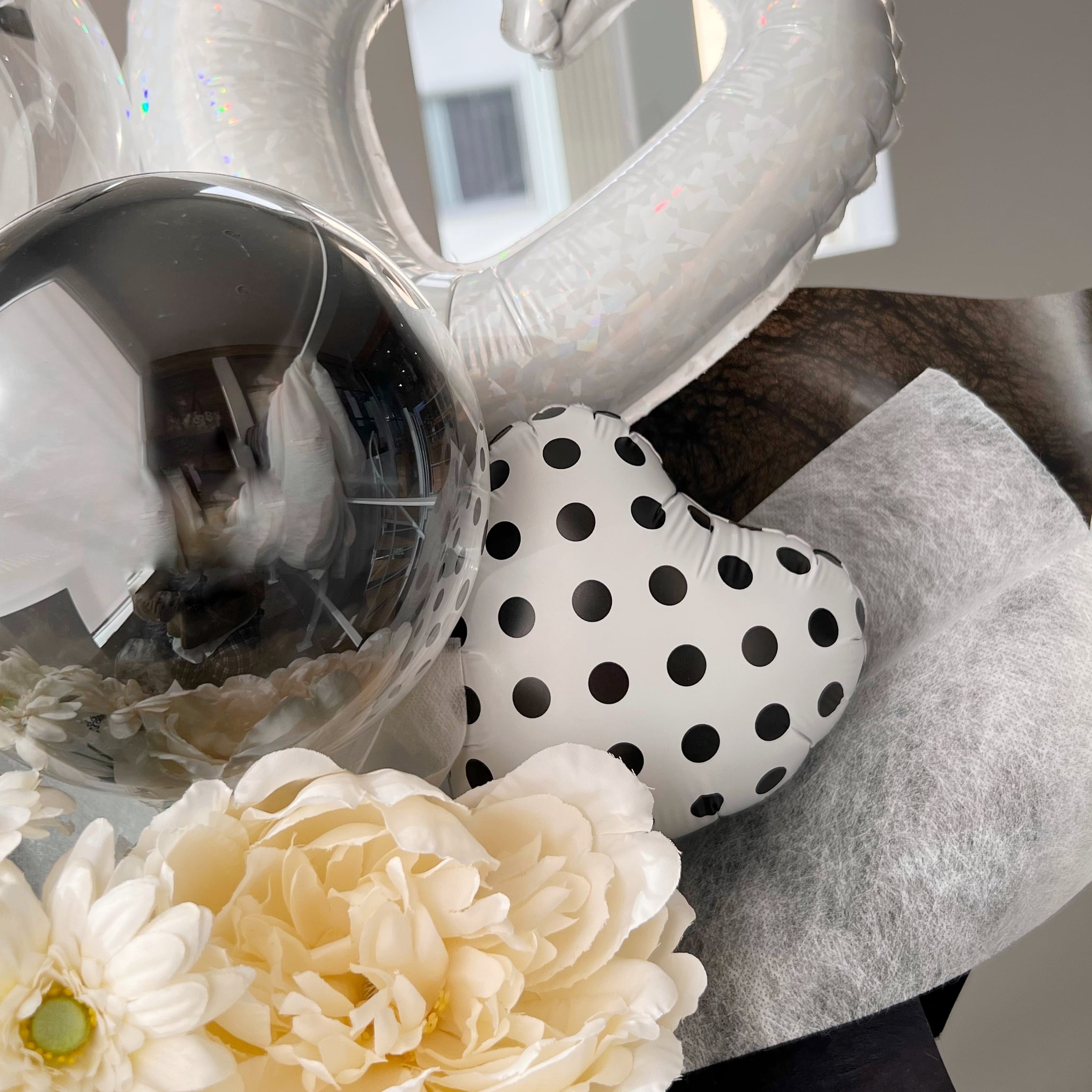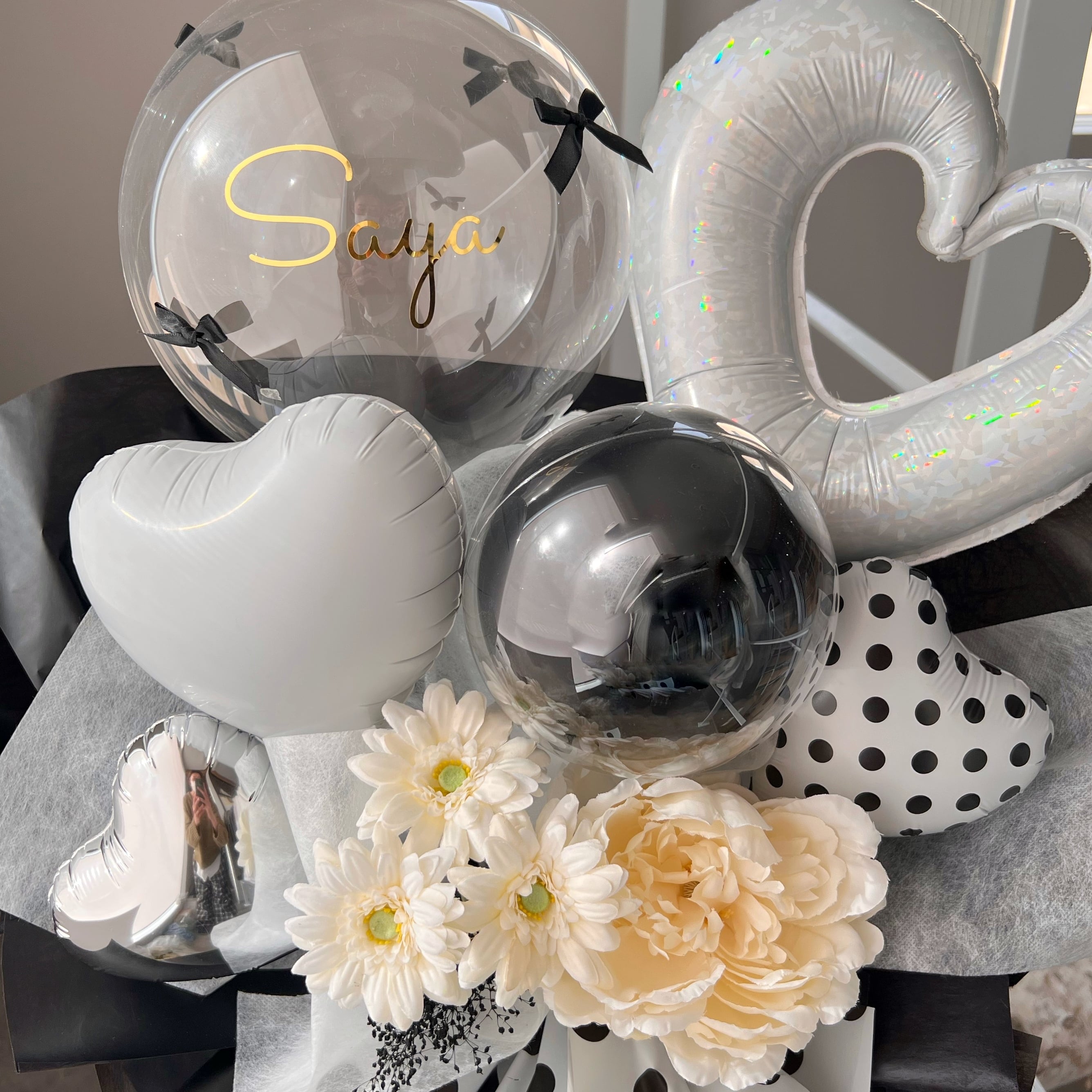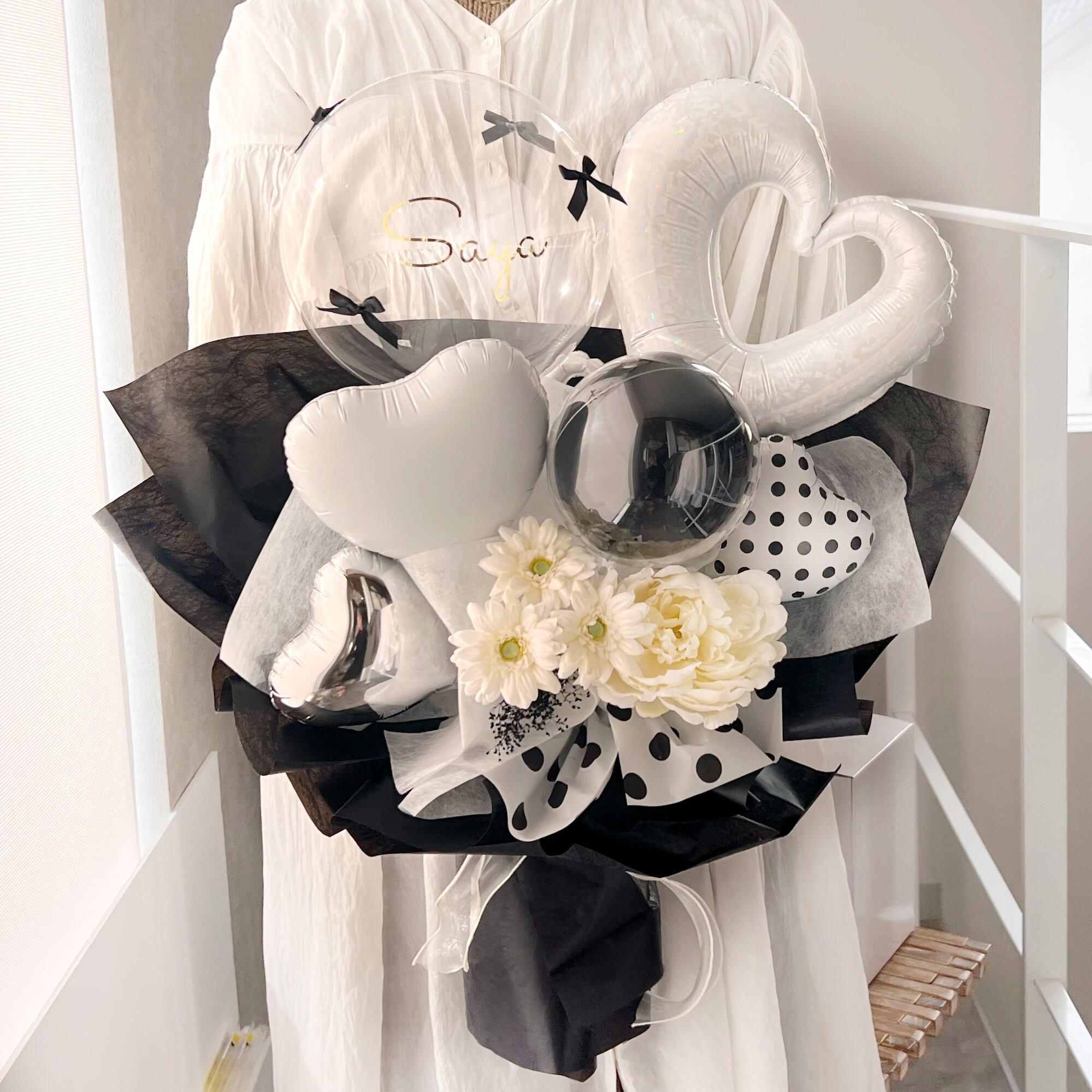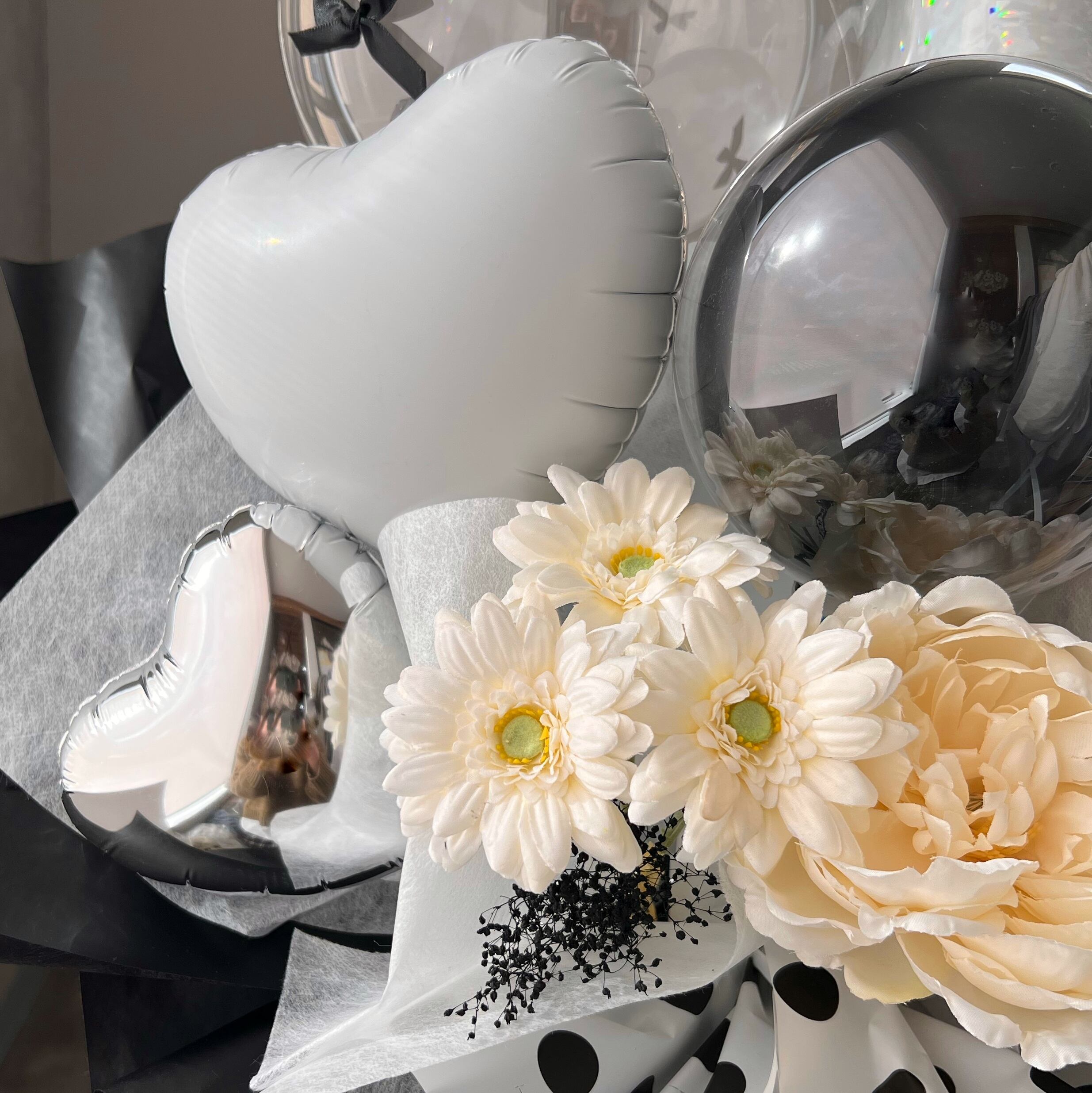 お花屋さんのバルーンフラワー 花束  B313 ドット ブラック 成人式 卒業式 結婚祝い 誕生日 開店祝い 開業祝い 発表会