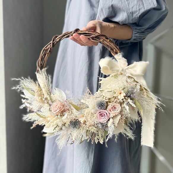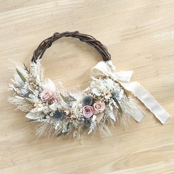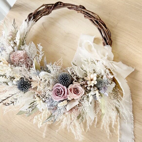 ドライ・プリザーブドフラワーでお作りしたリースブーケです