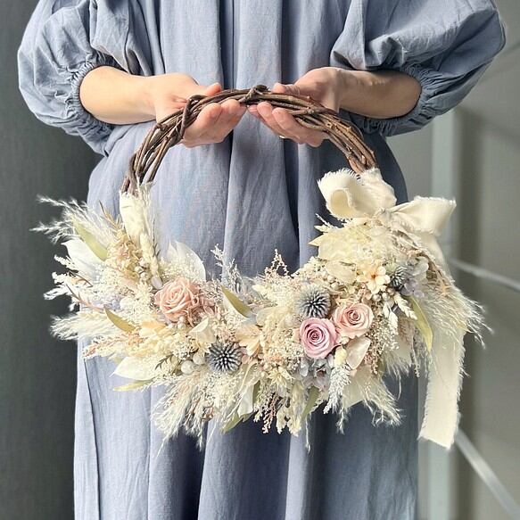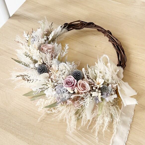 リースブーケ 803くすみピンク ウェディング 誕生日 プリザーブドフラワー ドライフラワー