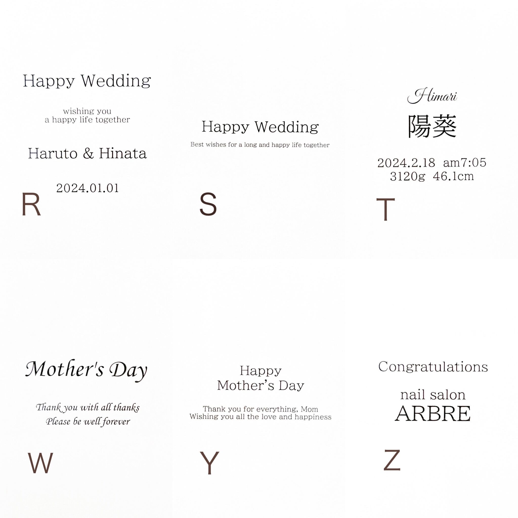 ご購入の際備考欄にてお好きなメッセージ内容をご記載下さいませ。