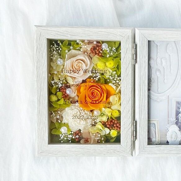 写真立て 文字入れOK 905オレンジイエロー フォトフレーム 子育て感謝状 両親贈呈 ウェディング