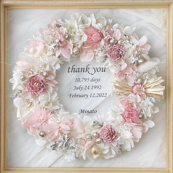 写真も飾れる*全30種類 木製ガラスフレームリース 705ピンクホワイト ドライフラワー 両親贈呈 ウェディング 子育て感謝状 結婚式