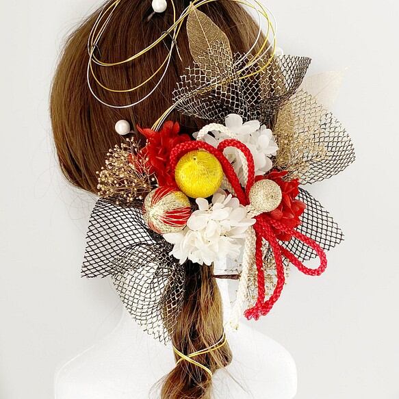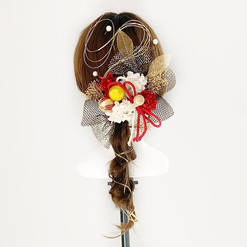 成人式、ウェディングドレス、カラードレス、袴、振袖、和装、白無垢、浴衣など様々なお衣装にとても合わせやすい髪飾りになります