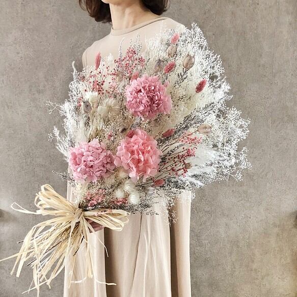 ナチュラルブーケXL ピンクホワイト ウェディング 結婚式 ドライフラワー 前撮り プリザーブドフラワー