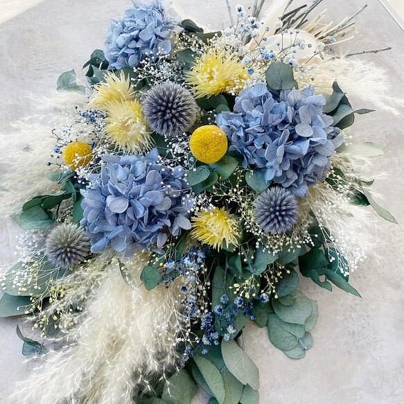 ナチュラルブーケL ルリ玉ブルー ウェディング ドライフラワー プリザーブドフラワー