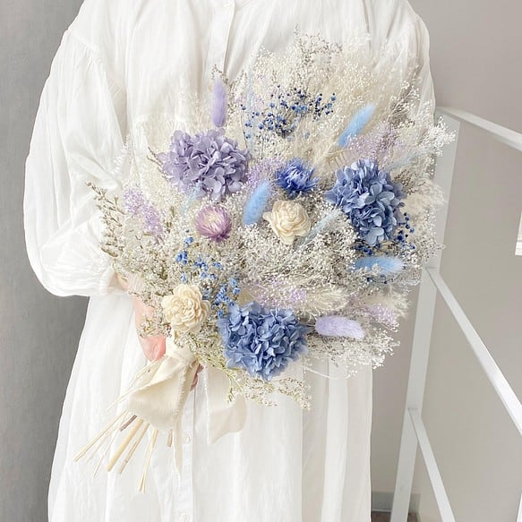 ナチュラルブーケL ブルーラベンダー ウェディング ドライフラワー プリザーブドフラワー