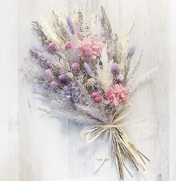 ナチュラルブーケLエンジェルパープル ウェディング ドライフラワー 前撮り プリザーブドフラワー