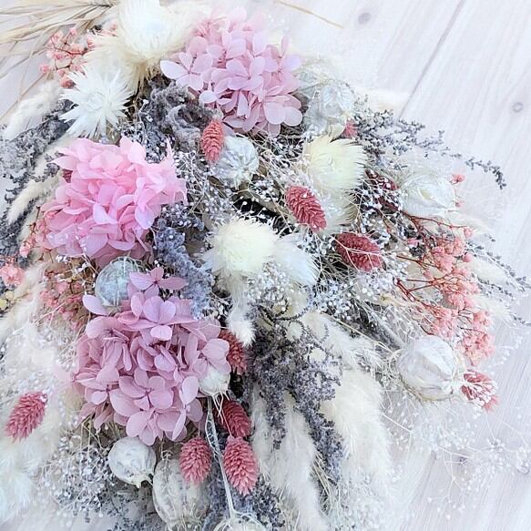 ナチュラルブーケL ピンクホワイト ウェディング ドライフラワー 結婚式 二次会 前撮り プリザーブドフラワー