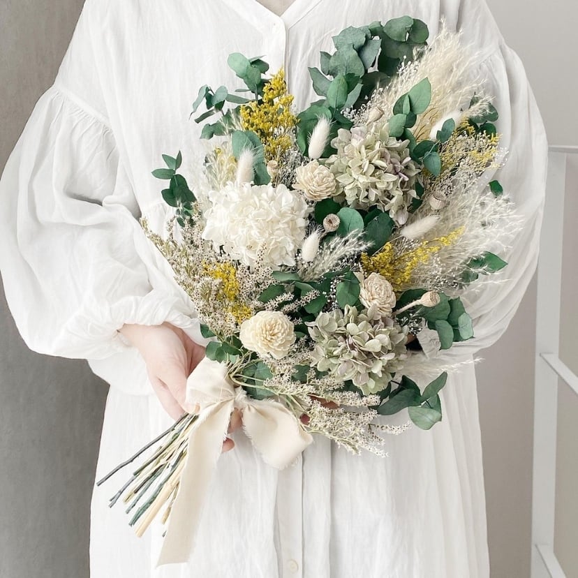 ナチュラルブーケL ユーカリオレガノホワイト ウェディング ドライフラワー プリザーブドフラワー