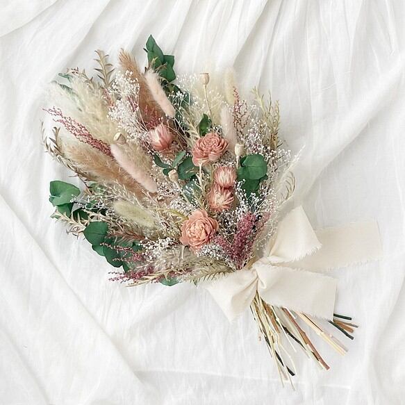 ナチュラルブーケM クラウドピンク ウェディング 誕生日 プリザーブドフラワー ドライフラワー