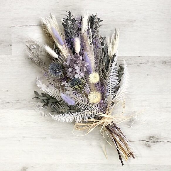 ナチュラルブーケM ラグラスパープル 花束 ウェディング 結婚式 誕生日 プリザーブドフラワー ドライフラワー