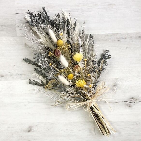 ナチュラルブーケM ビリーボタン 花束 ウェディング 結婚式 誕生日 プリザーブドフラワー ドライフラワー