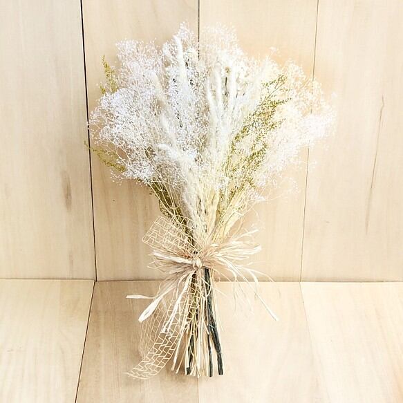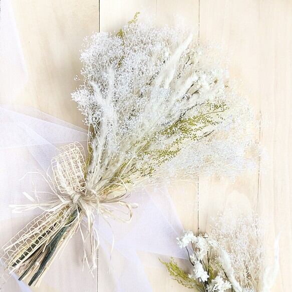 カスミソウとテールリードのふんわりブーケ ウェディング プリザーブドフラワー ドライフラワー カスミソウ 発表会