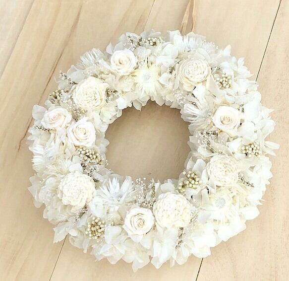 ミニバラのオフホワイトリース ホワイト アイボリー プリザーブドフラワー ウェディング