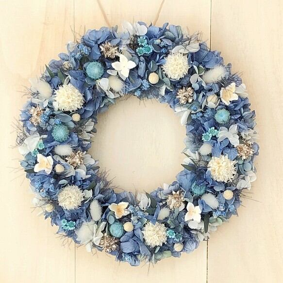くすみカラーのアクアブルーリースL ドライフラワー プリザーブドフラワー リース 誕生日 ウェディング