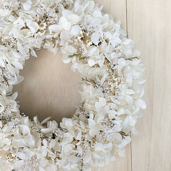 ふんわりカスミソウ アジサイリース プリザーブドフラワー クリスマス リース