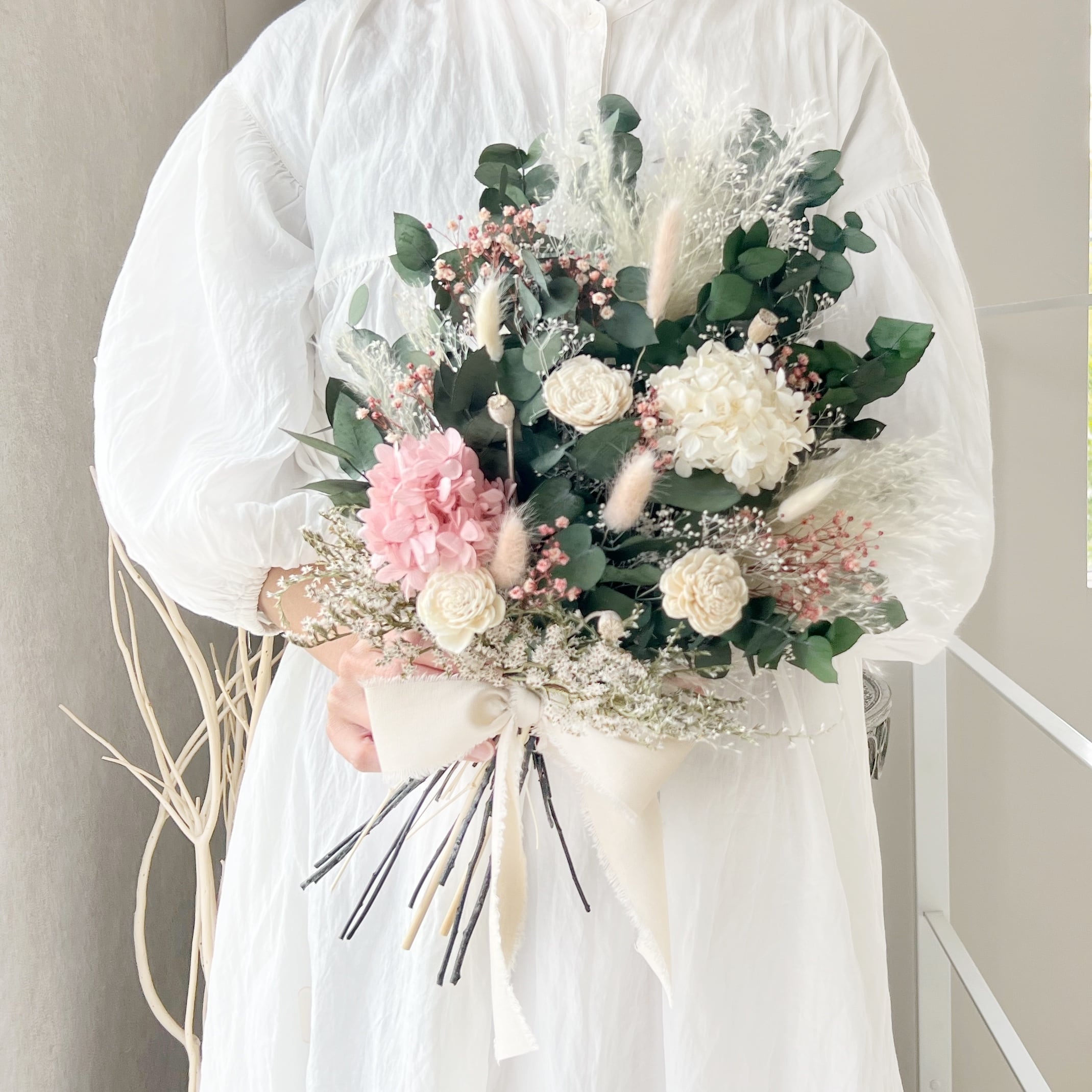 ドライ・プリザーブドフラワーでお作りしたナチュラルブーケです