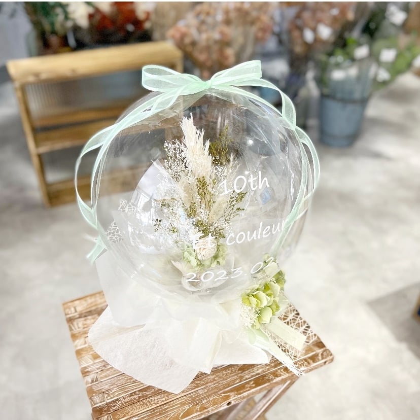 水のような透明感・シャボン玉のように軽く、1カ月以上綺麗に膨らむ特殊なバルーンフラワーアレンジメントです