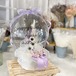 ドライフラワーでお作りしたブーケをアクアバルーンの中にお入れ致しました。白い丸ボックスに、かすみ草&アーティシャルフラワーでアレンジした置き型のタイプになります。