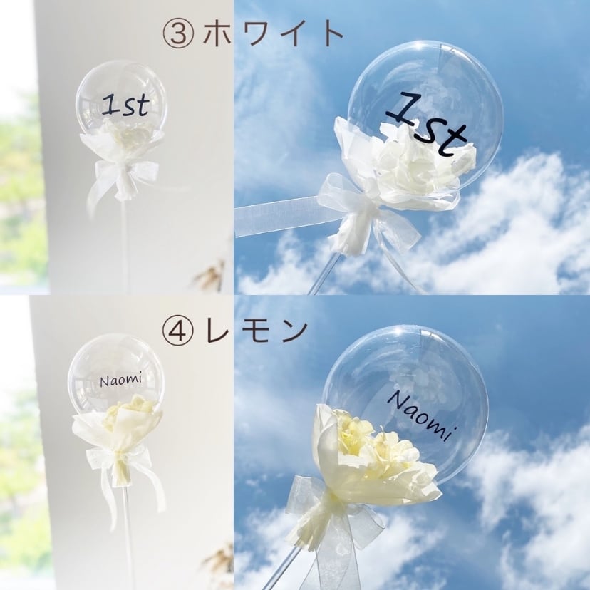 水のような透明感・シャボン玉のように軽く、1カ月ほど綺麗に膨らむ特殊なバルーンフラワーブーケです