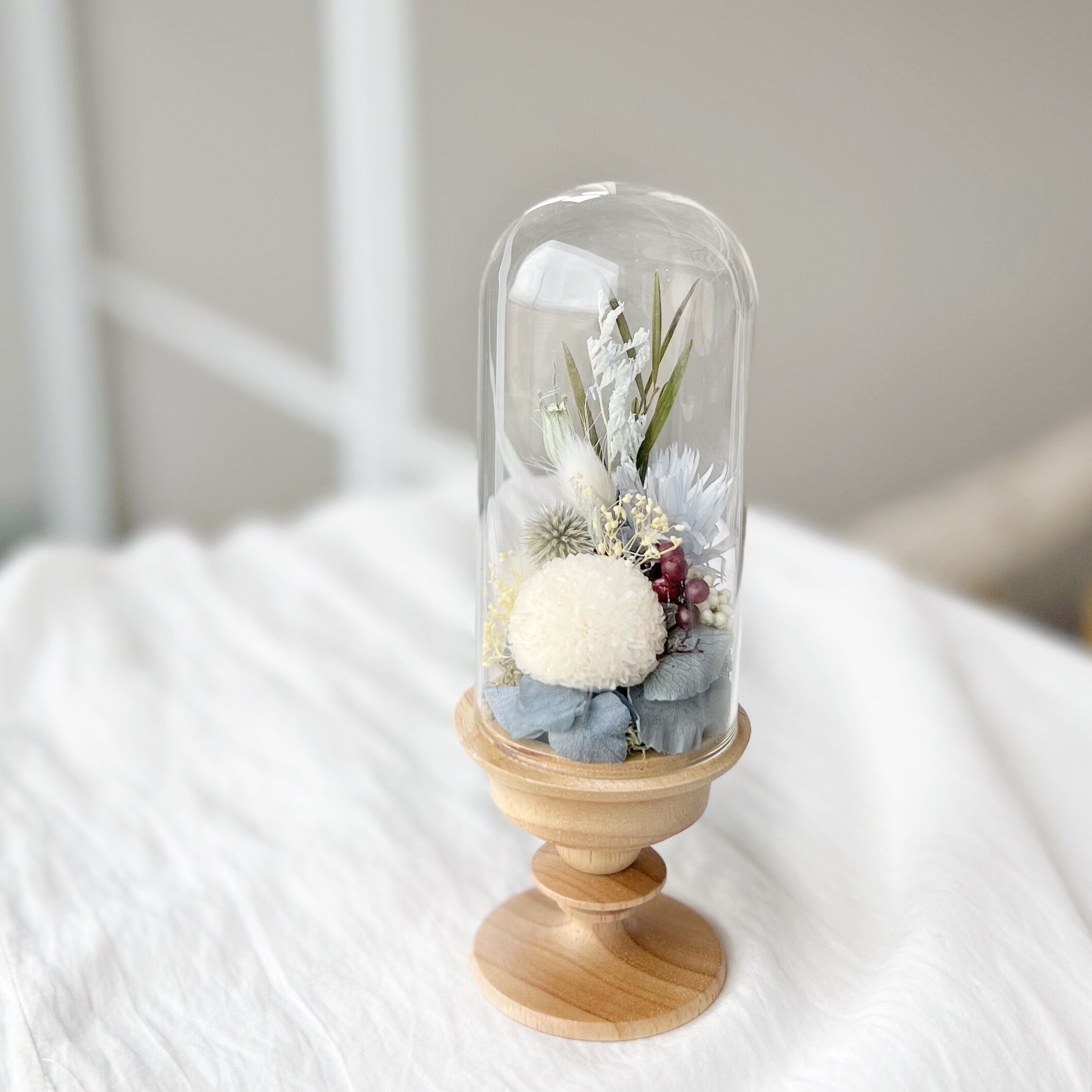 プリザーブドフラワーでお作りしたガラスドーム仏花になります