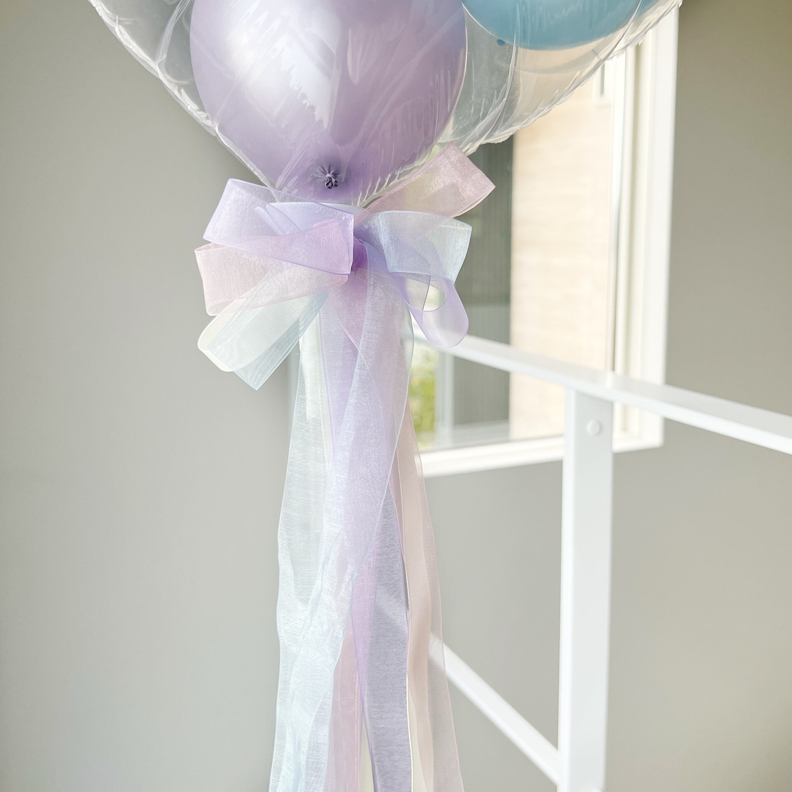 ハート型の中にパステルカラーバルーンをお入れしたスティックタイプのバルーンになります