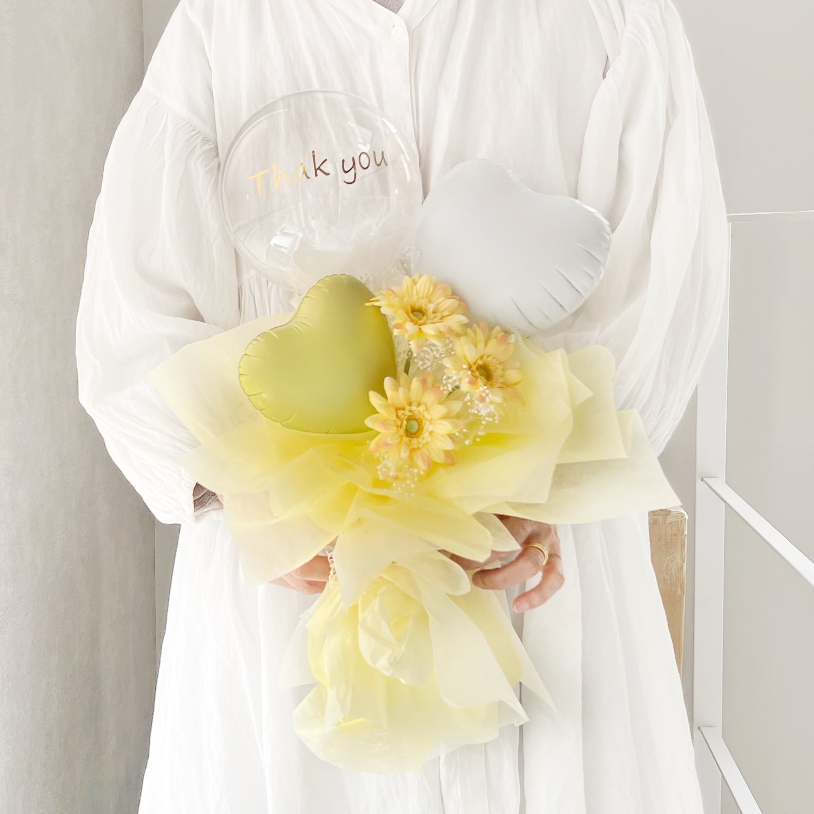 ガーベラ(アーティシャルフラワー)ブーケにバルーンを添えたバルーンフラワーになります。バルーンを取り外した後はそのままインテリアとしてお飾り頂ける2wayタイプになります