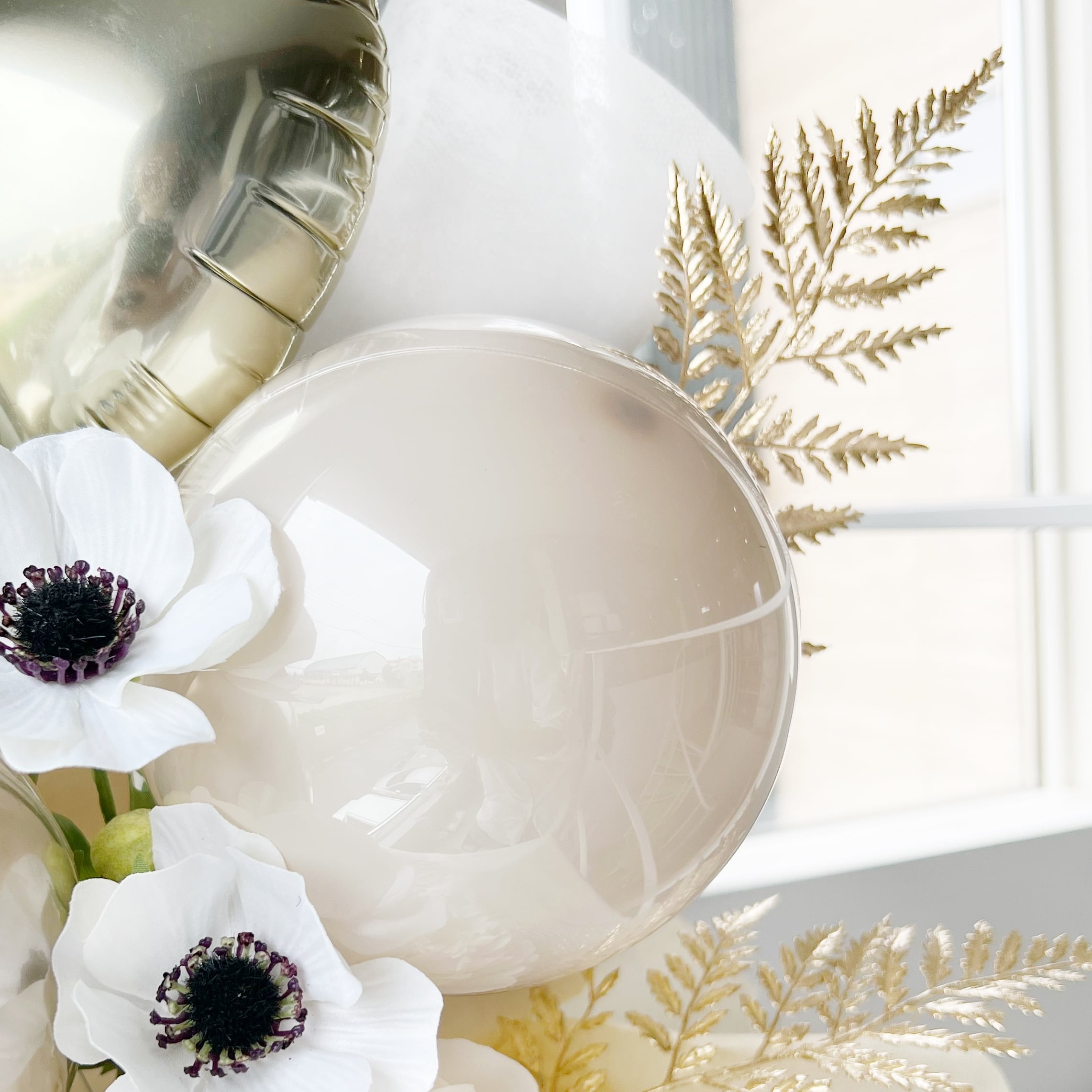 透き通った透明感のある特殊なバルーンを数種類お入れしたアレンジメントになります