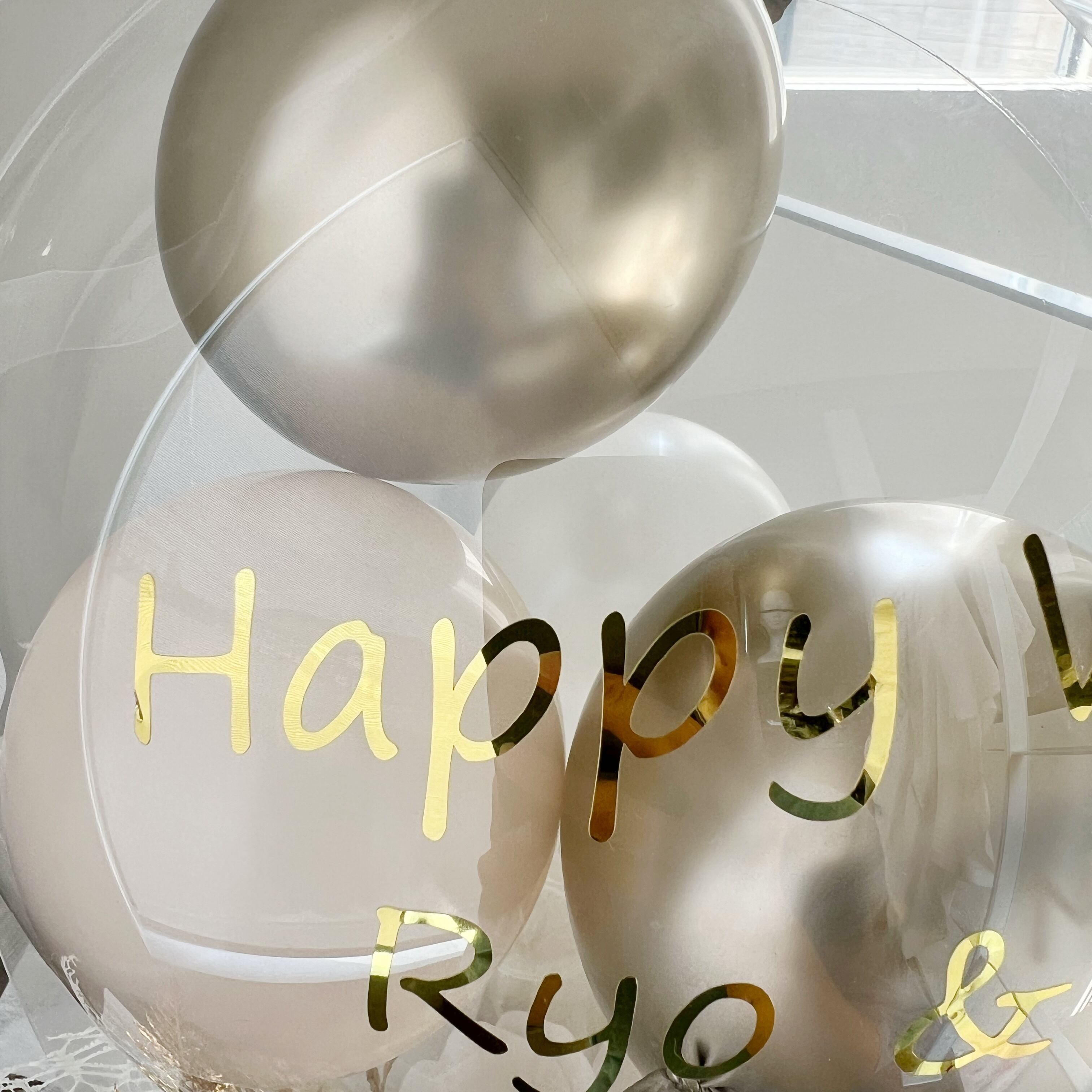 透き通った透明感のある特殊なバルーンをお入れしたアレンジメントになります